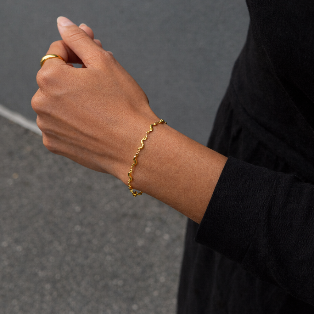 Opbevar dit smykke i en tør pose eller æske, når du ikke bruger det. Undgå vand, parfume og kemikalier for at bevare glansen længere.