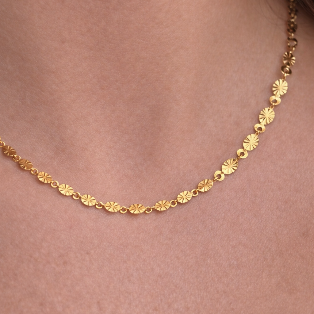Opbevar dit smykke i en tør pose eller æske, når du ikke bruger det. Undgå vand, parfume og kemikalier for at bevare glansen længere.