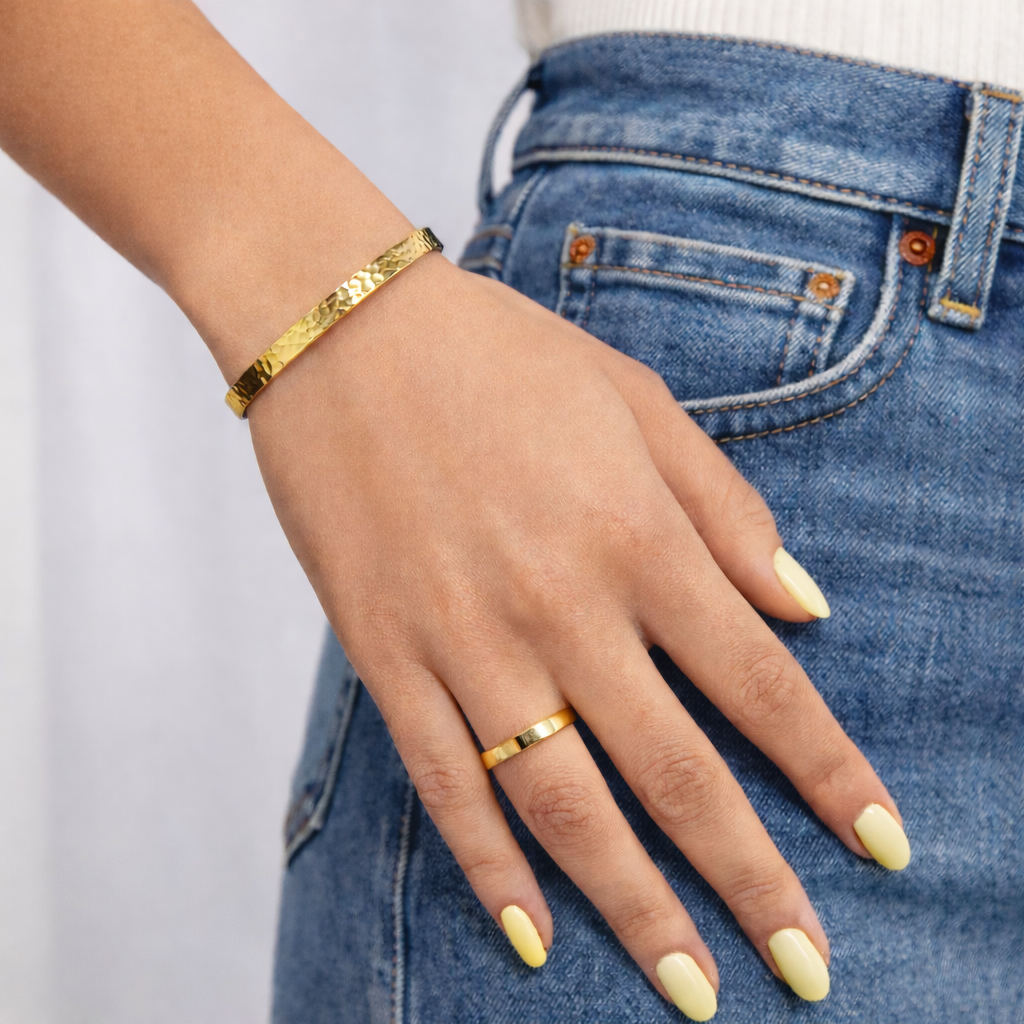 Opbevar dit smykke i en tør pose eller æske, når du ikke bruger det. Undgå vand, parfume og kemikalier for at bevare glansen længere.